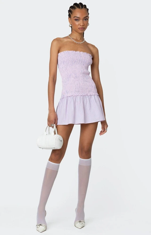 Edikted Contrast Bubble Skirt Ribbed Mini Dress