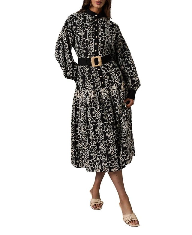 Brakeburn Women's Embers Long Sleeve Tie Waist Midi Dress