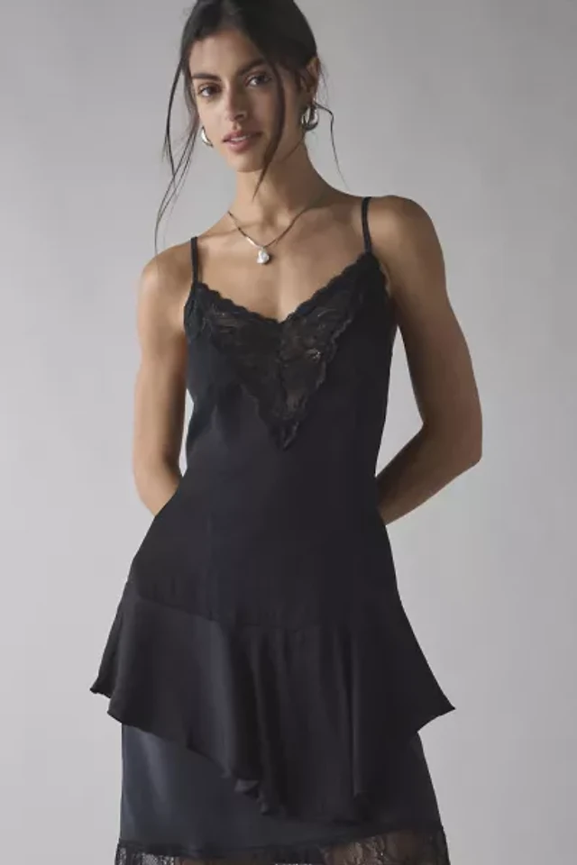 Out From Under Mei Tiered Lace Trim Satin Slip
