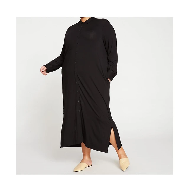 Buxom Couture Women's Plus Maxi Stripe Shirt Dress