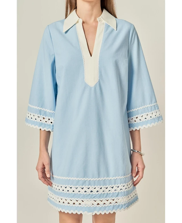 Lara Women's Beaded Long Sleeve A-line Dress