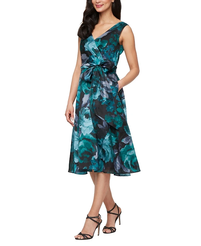 julia jordan Women's Printed Tie-Waist Midi Dress