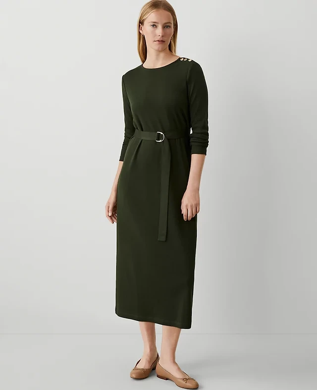 Chambray Seamed Midi Pocket Shirtdress
