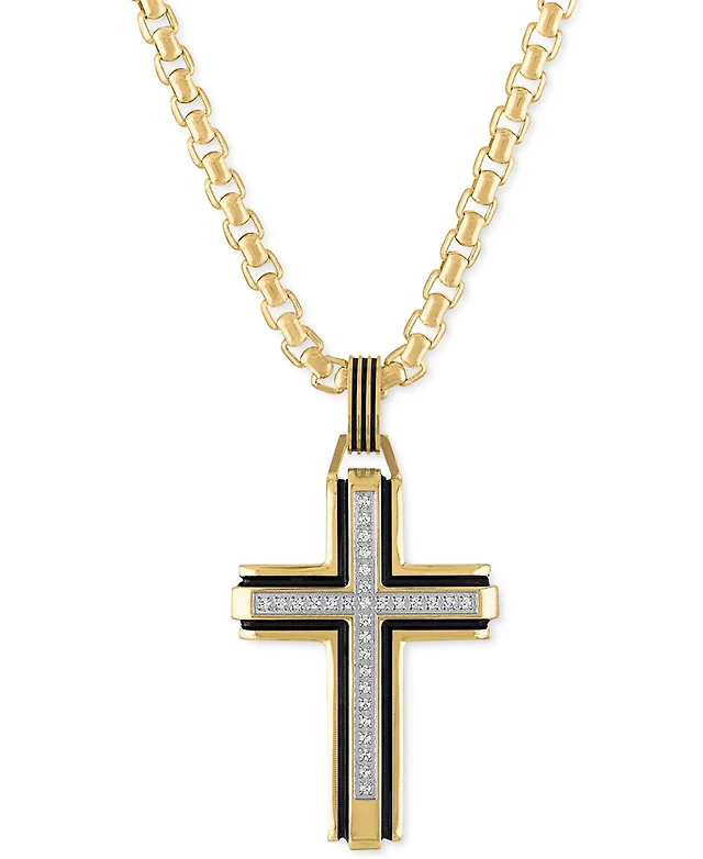 Esquire Men's Jewelry Diamond Religious Cross 22" Pendant Necklace (1/6 ct. t.w.), Created for Macy's