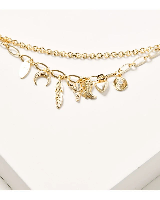 Shyanne Women's Rodeo Sunset Layered Charm Concho Necklace