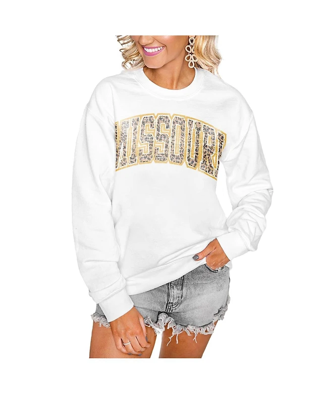 Gameday Couture Women's White Missouri Tigers Distressed Snap Perfect Oversized Pullover Sweatshirt