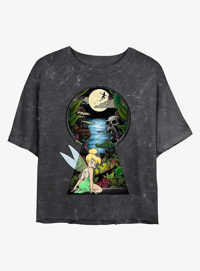 Disney Tinker Bell Keyhole To Neverland Mineral Wash Girls Crop T-Shirt