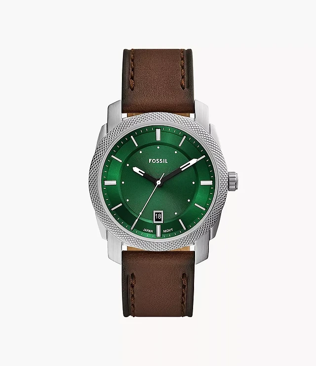 Everett Three-Hand Date Brown Leather Watch and Bracelet Set