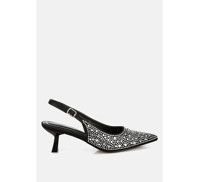 Vernaos Pointed Toe Rhinestone Slingbacks