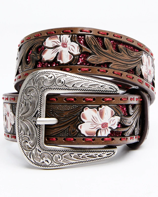 Shyanne Girls' Floral & Crystal Rhinestone Leather Belt