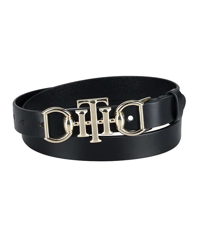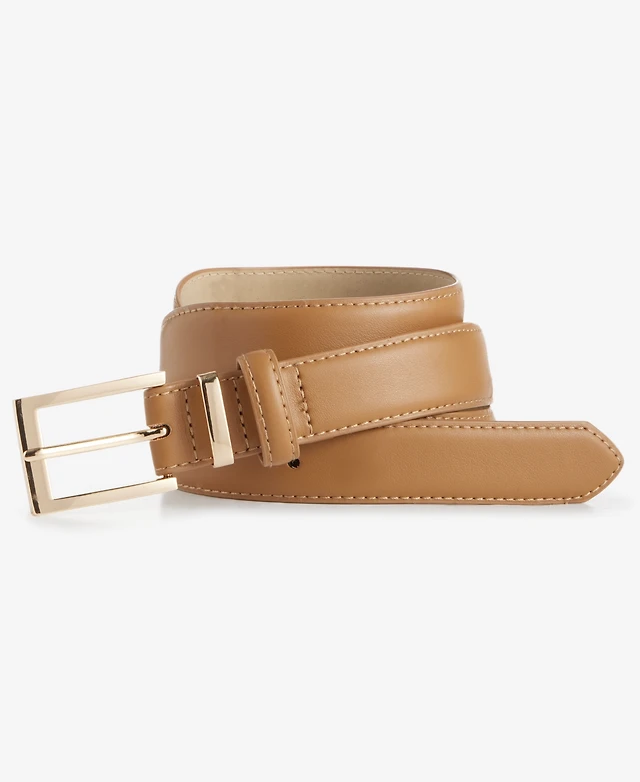 Sam Edelman Women's Brass-Tone Double-e Plaque Buckle Casual Belt