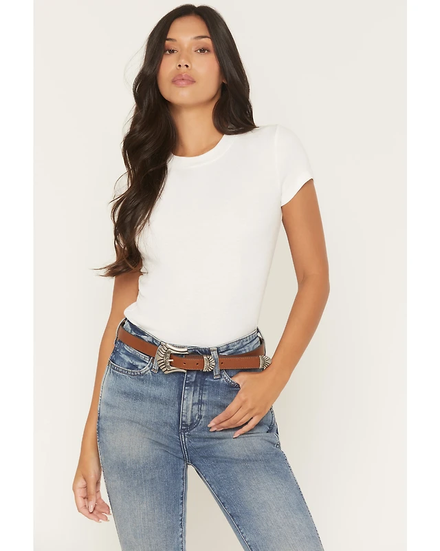 Cowgirls Rock Women's Oval Bar Buckle Leather Belt