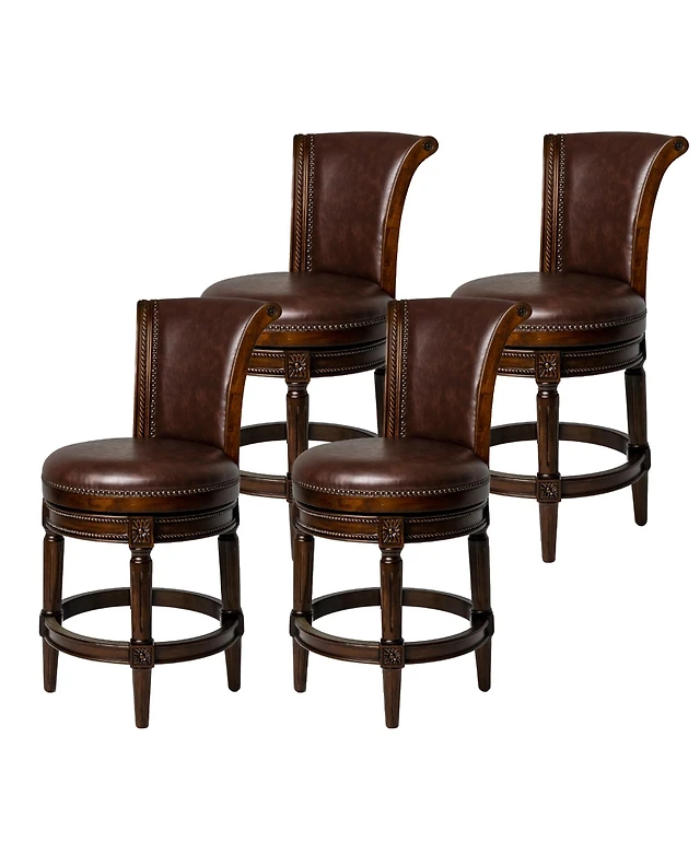 Gymax Set of Wooden Swivel Bar Stools Counter Height Kitchen Chairs w/ Back