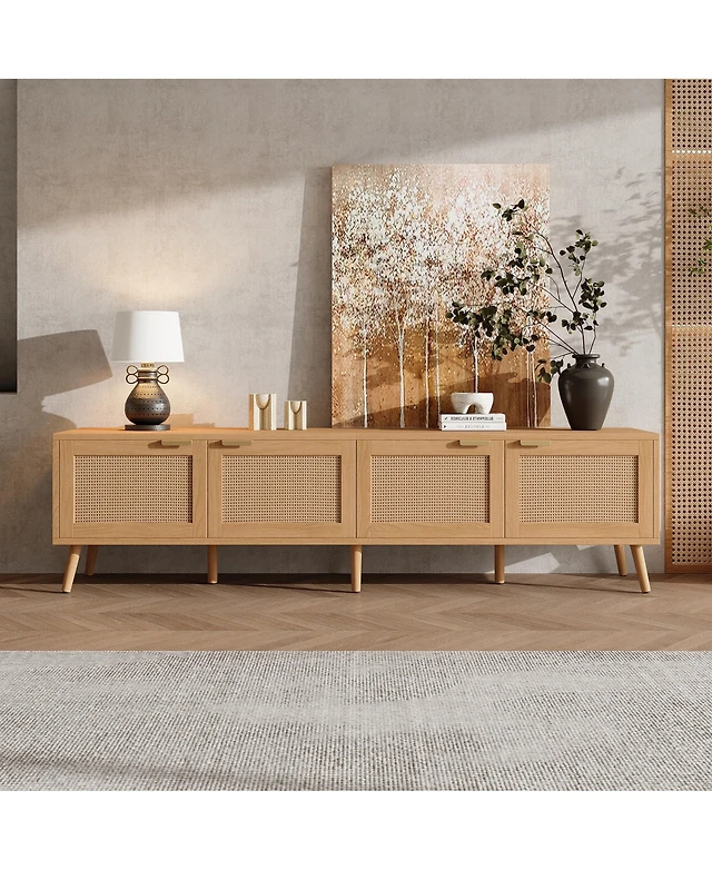 gaomon Tv Stand for 75 Inch Tv, Entainment Center with Storage Cabinets, Rattan Tv Console with Adjustable Shelf