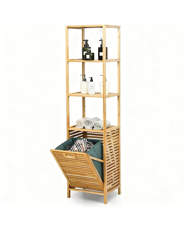 Rainsken Pull-Out Bathroom Storage Unit with 1 Removable Liner Bag for Easy Sorting & Storage Laundry Hamper Cabinet
