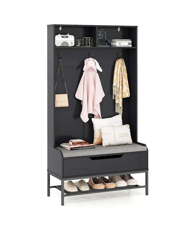 Slickblue Modern Industrial Hall Tree with Coat Rack and Shoe Storage Bench for Entryway