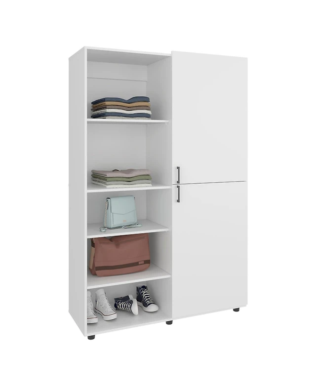 Bedroom Corner Armoire, Wardrobe with 2-Drawers and 2-Hold Bar