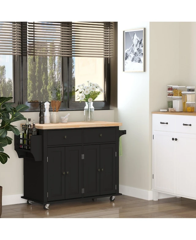 Halifax North America Brown Oak Kitchen Trolley: Rolling Cart with Rubberwood Top & Racks