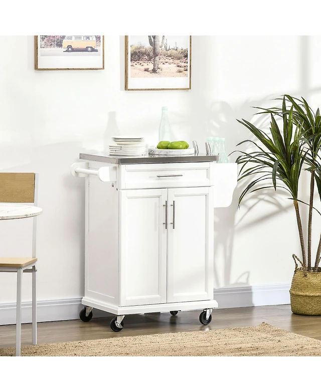 43.12-Inch White Kitchen Island & Cart with Drop-Leaf, 2 Drawers, Adjustable Shelves, Lockable Wheels & Wood Top for Kitchen & Bar