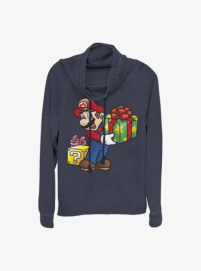 Nintendo Mario Christmas Present Cowlneck Long-Sleeve Girls Top