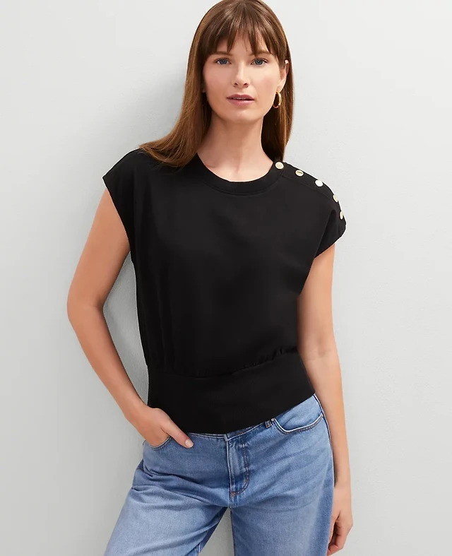 Ann Taylor Satin Button Popover Top Women's