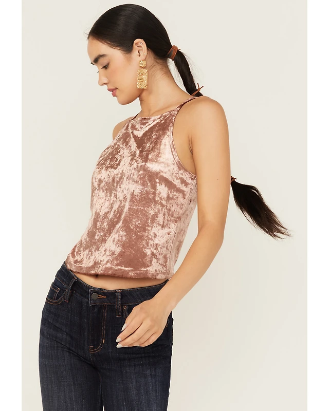 Shyanne Women's Solid Faux Suede Sleeveless Crochet Tank Top