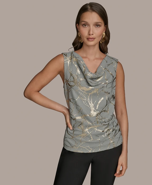 Dkny Women's Mock-Neck Sleeveless Side-ruched Knit Top, Regular & Petite