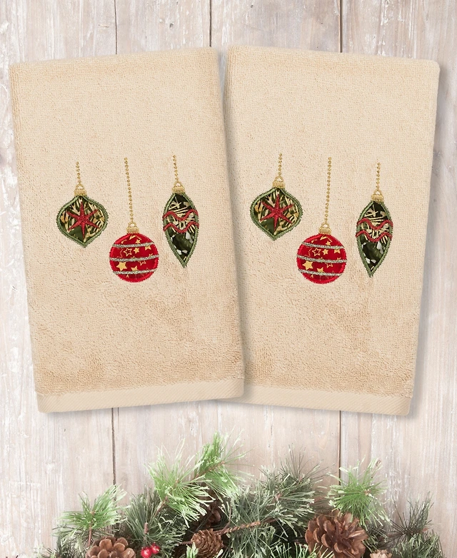 Linum Home Christmas Mistletoe Paix Joie Embroidered Luxury 100% Turkish Cotton Hand Towels, 2 Piece Set