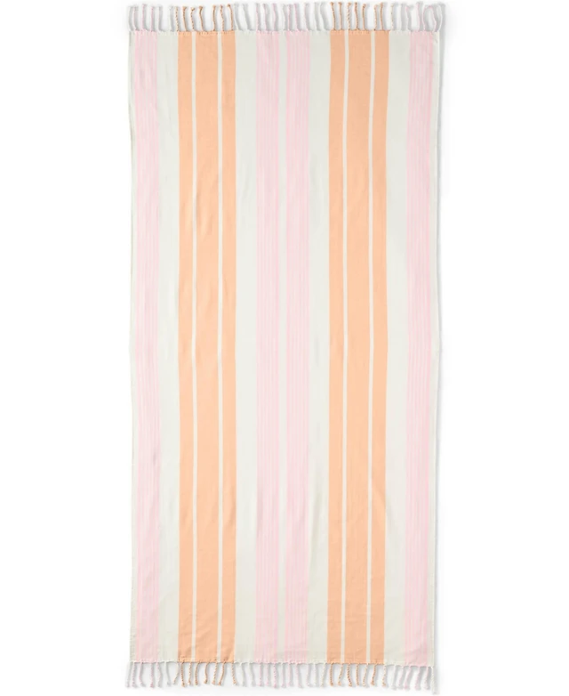 Linery & Co. Oversized Cotton Stripe Border Beach Towel