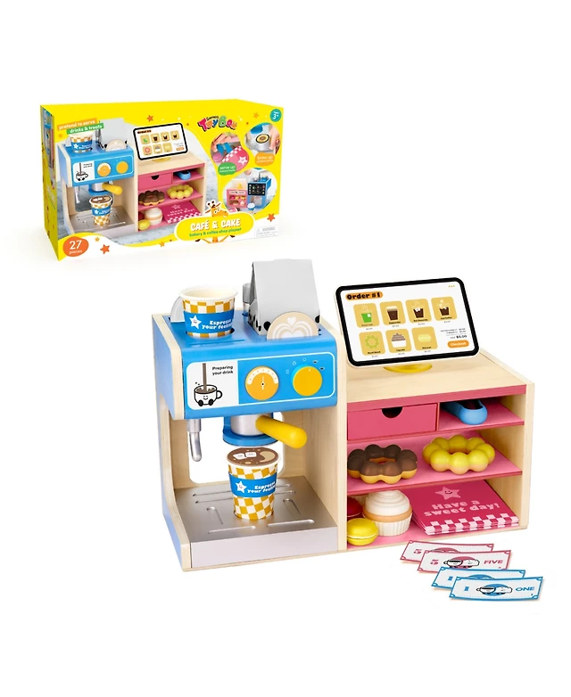 Gymax Wooden Supermarket Play Toy Set Kids Grocery Store Playset w/ Checkout Counter