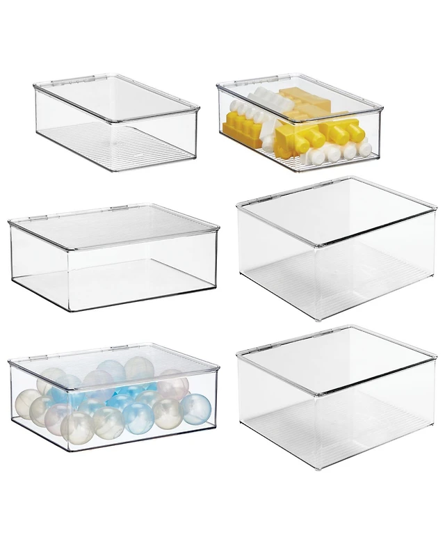 mDesign Plastic Stackable Playroom/Game Box with Hinged Lid, Set of 6, Clear