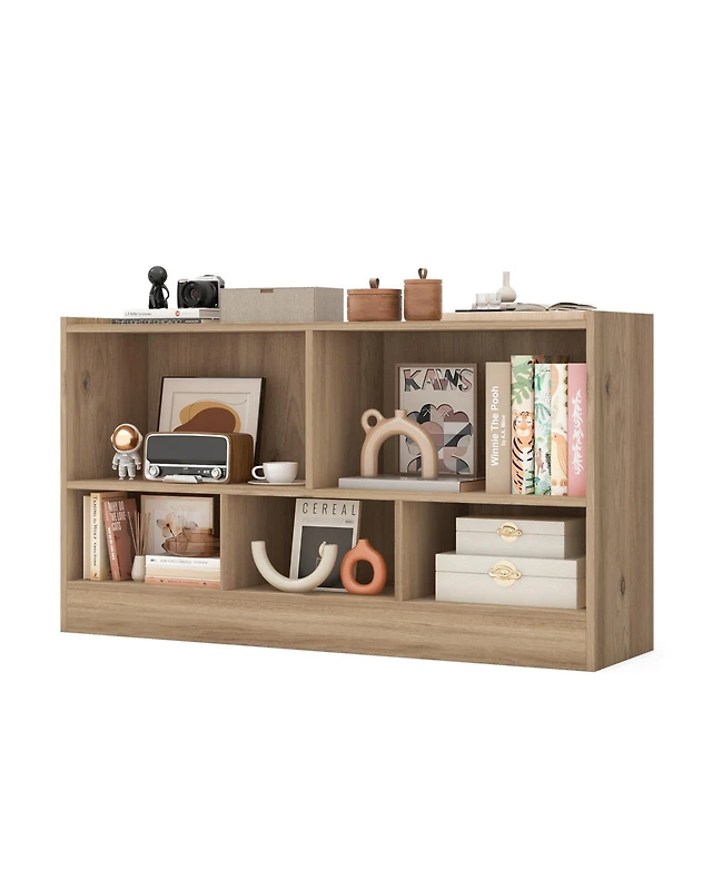 Gouun Kids 2-Shelf Bookcase 5-Cube Wood Toy Storage Cabinet Organizer