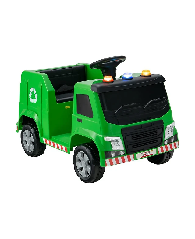 12V Kids Ride-on Garbage Truck with Warning Lights and 6 Recycling Accessories