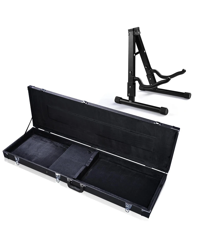 Yescom Electric Bass Guitar Hard Case Wooden Hard Shell & Folding Guitar Floor Stand