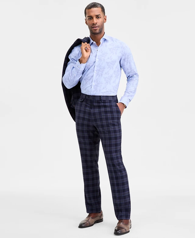 Tayion Collection Men's Classic-Fit Navy Plaid Suit Separates Pants
