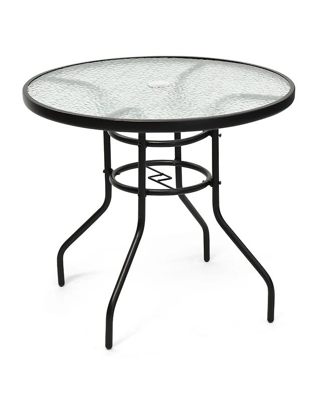 Gymax 35'' Patio Dining Table Square Outdoor Dining Table with Tempered Glass Tabletop
