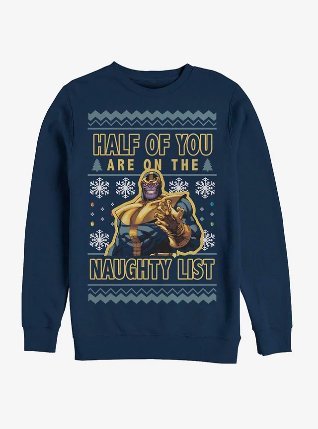Avengers Thanos Naughty List Ugly Christmas Crew Sweatshirt