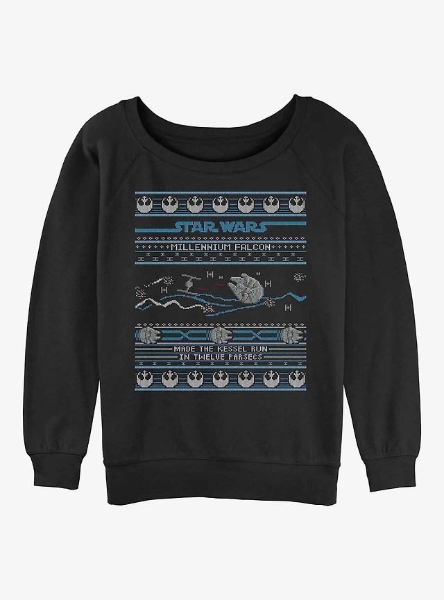 Star Wars Falcon Attack Ugly Christmas Womens Slouchy Sweatshirt
