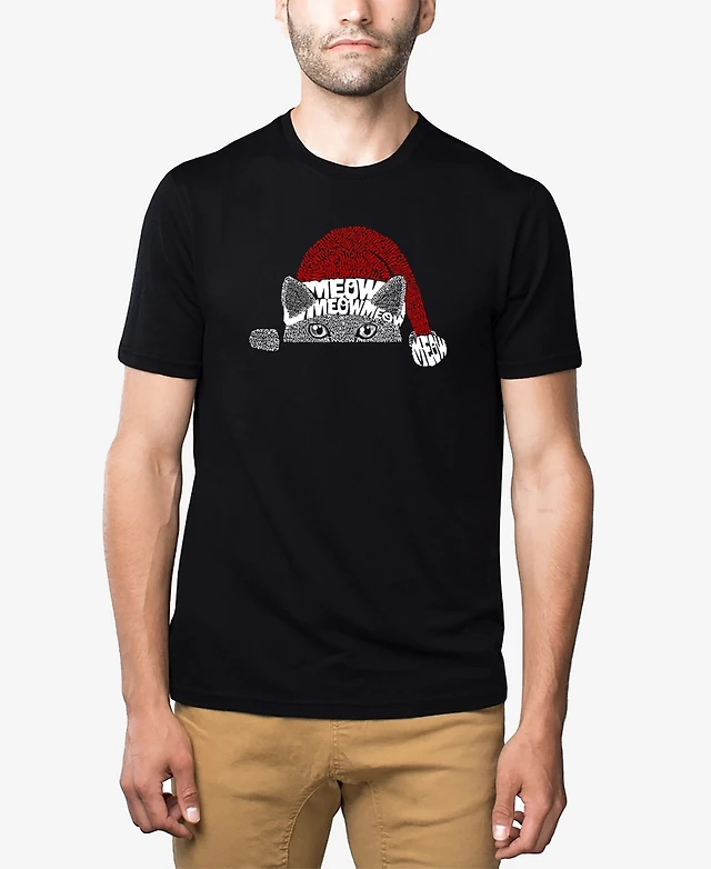 La Pop Art Men's Christmas Peeking Cat Premium Blend Word T-shirt