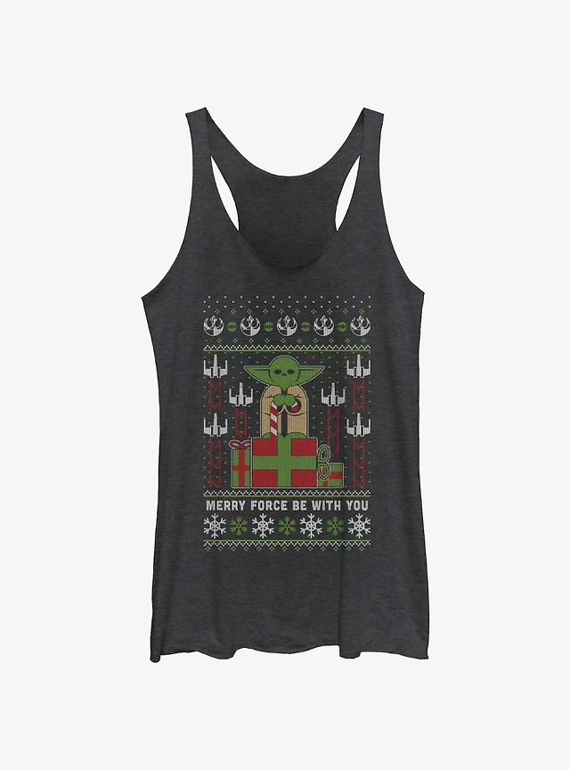 Star Wars The Mandalorian Grogu Merry Force Be With You Ugly Christmas Extra Soft T-Shirt
