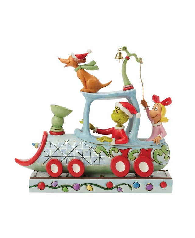 Jim Shore Grinch, Max and Cindy on Train Figurine