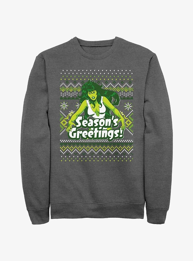 Marvel Hulk She-Hulk Season's Greetings Ugly Christmas Sweatshirt