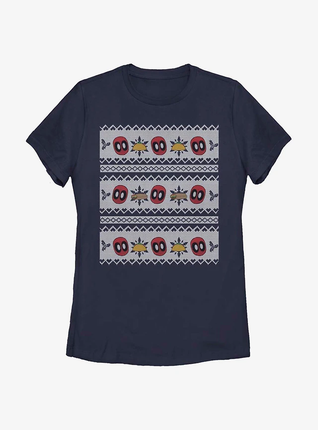 Marvel Deadpool Christmas Pattern Womens T-Shirt