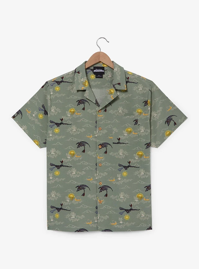 DreamWorks How to Train Your Dragon Toothless Icons Allover Print Woven Button-Up - BoxLunch Exclusive