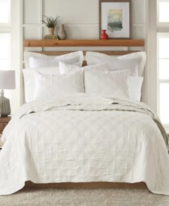 MarCielo 3-Piece 100% White Cotton Oversized Bedspread Quilt Set Sakura