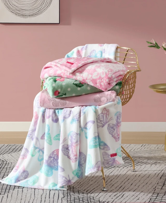 Linery & Co. Velvet Plush Fleece Reversible Sherpa Holiday Printed Throw