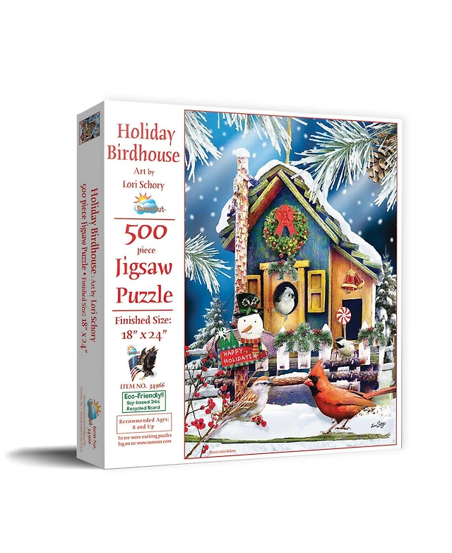SunsOut Holiday Birdhouse 500 piece Jigsaw Puzzle for Adults Christmas