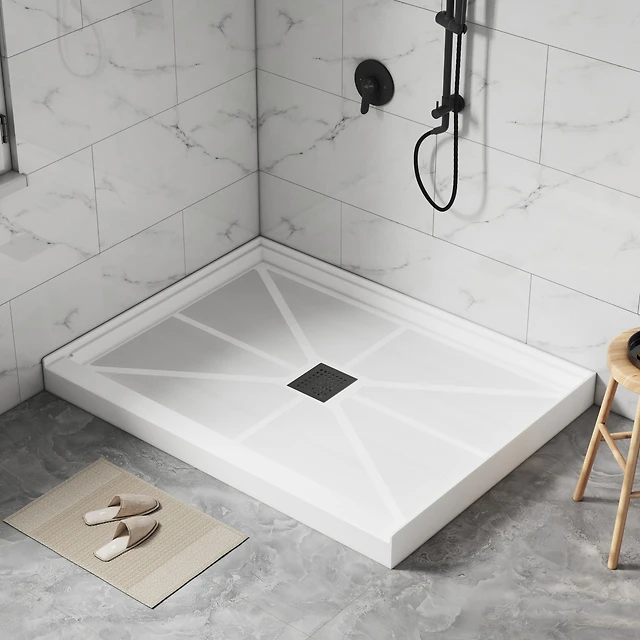 Casainc 48"W X 36"D Solid Surface Single Threshold Shower Base Anti-Slip Shower Pan, Drain Assembly & Drain Cover Included