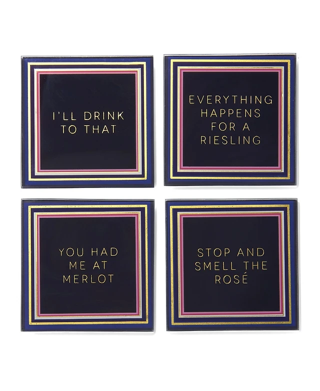 American Atelier 4 X 4" Sip Sip Hooray Slate Coasters Square Set, 4 Piece
