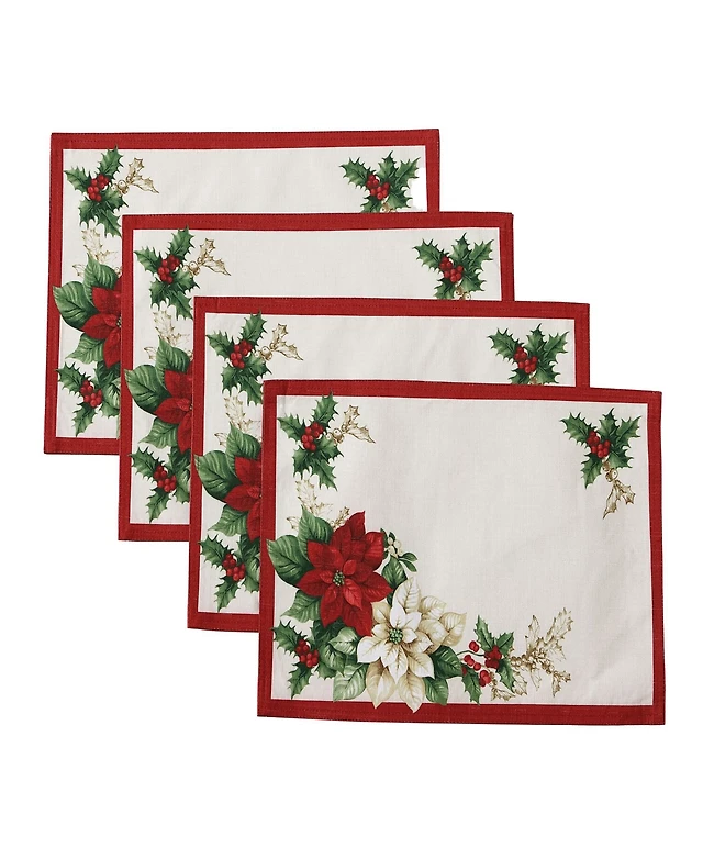 Elrene Festive Poinsettia Holiday Cloth Napkins, Set of 4
